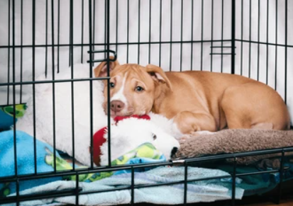 Get the correct size crate for your pup! Your dog should be able to stand up completely, turn around, and lay down comfortably in their crate. A crate that is too small can lead to discomfort and pain as they won’t be able to stand up or turn around comfortably, it may also make them feel trapped which is never a good feeling. We recommend something like this!